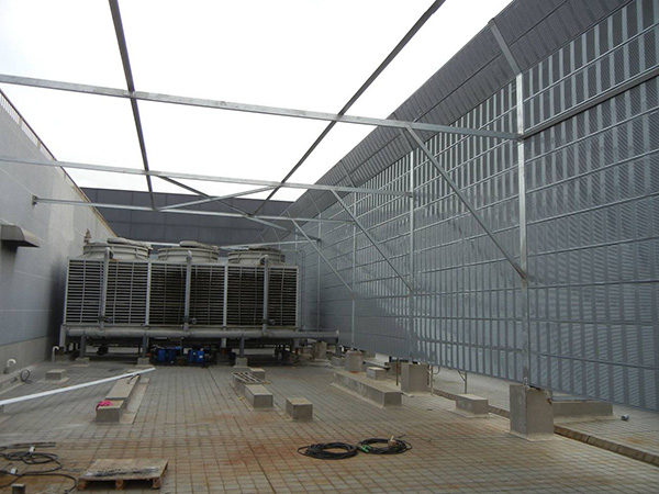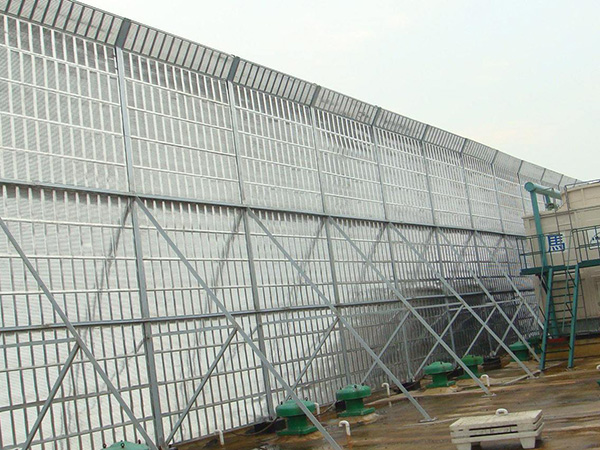 冷卻塔聲屏障采用混合型聲屏障,頂部為吸聲單元,以下部分為隔聲單元。合理確定聲屏障